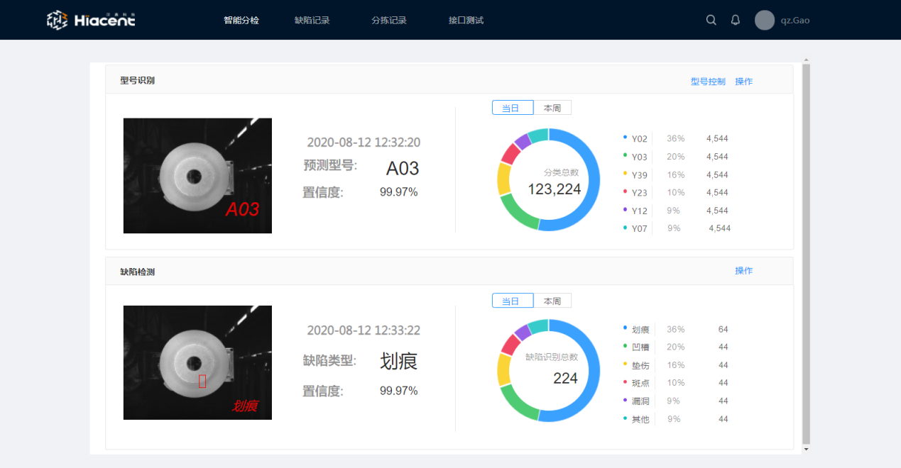 此外,智能分拣管理系统还提供实时图片识别展示、分拣追溯、统计报表等功能。方便企业能够实时获取图像并显示,给企业直观的检测分析;针对识别准确率低的图片追溯、归档,上传至ModelArts平台优化算法模型,用于新型号的训练及原有型号识别准确率的提高。